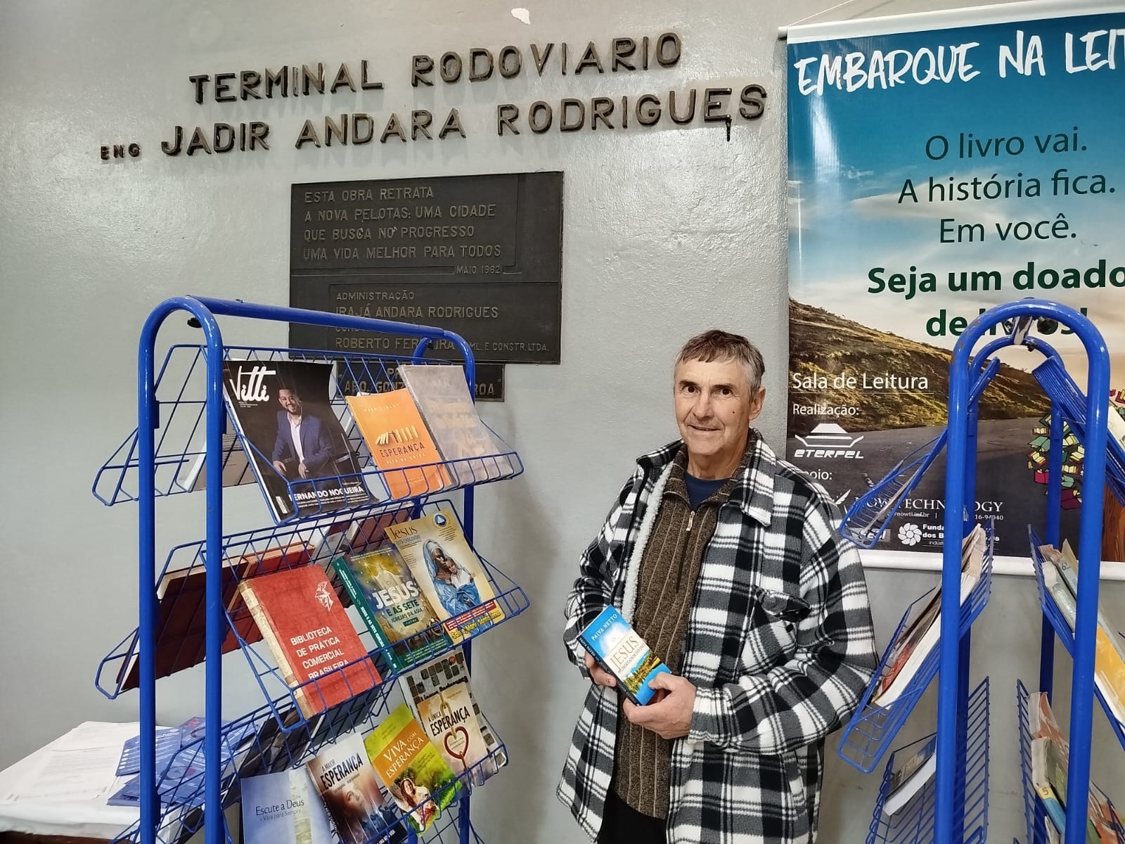 Com muita alegria e devoção legionária, o veterano Cristão do Novo Mandamento, Amigo de Jesus, Odilon Beloni adquire a literatura da Religião do Terceiro Milênio e a revista JESUS ESTÁ CHEGANDO! e, além de realizar a tradicional multiplicação voluntária, ele compartilha esse conteúdo de Paz e Fraternidade Ecumênica com quem frequenta a sala de leitura do Terminal Rodoviário de Pelotas/RS, cidade onde reside.