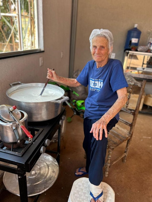 Com muita disposição e alegria, a Irmã Benvinda Batista de Oliveira, 89 anos, juntou-se à Equipe Legionária Solidária de Goiânia/GO e preparou um panelão de arroz doce, sua especialidade, para servir às centenas de pessoas que estiveram presentes na Cruzada do Novo Mandamento de Jesus, durante o Roteiro Missionário “Irmão Paiva, Eterna Gratidão!”.