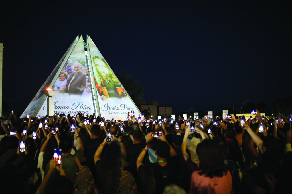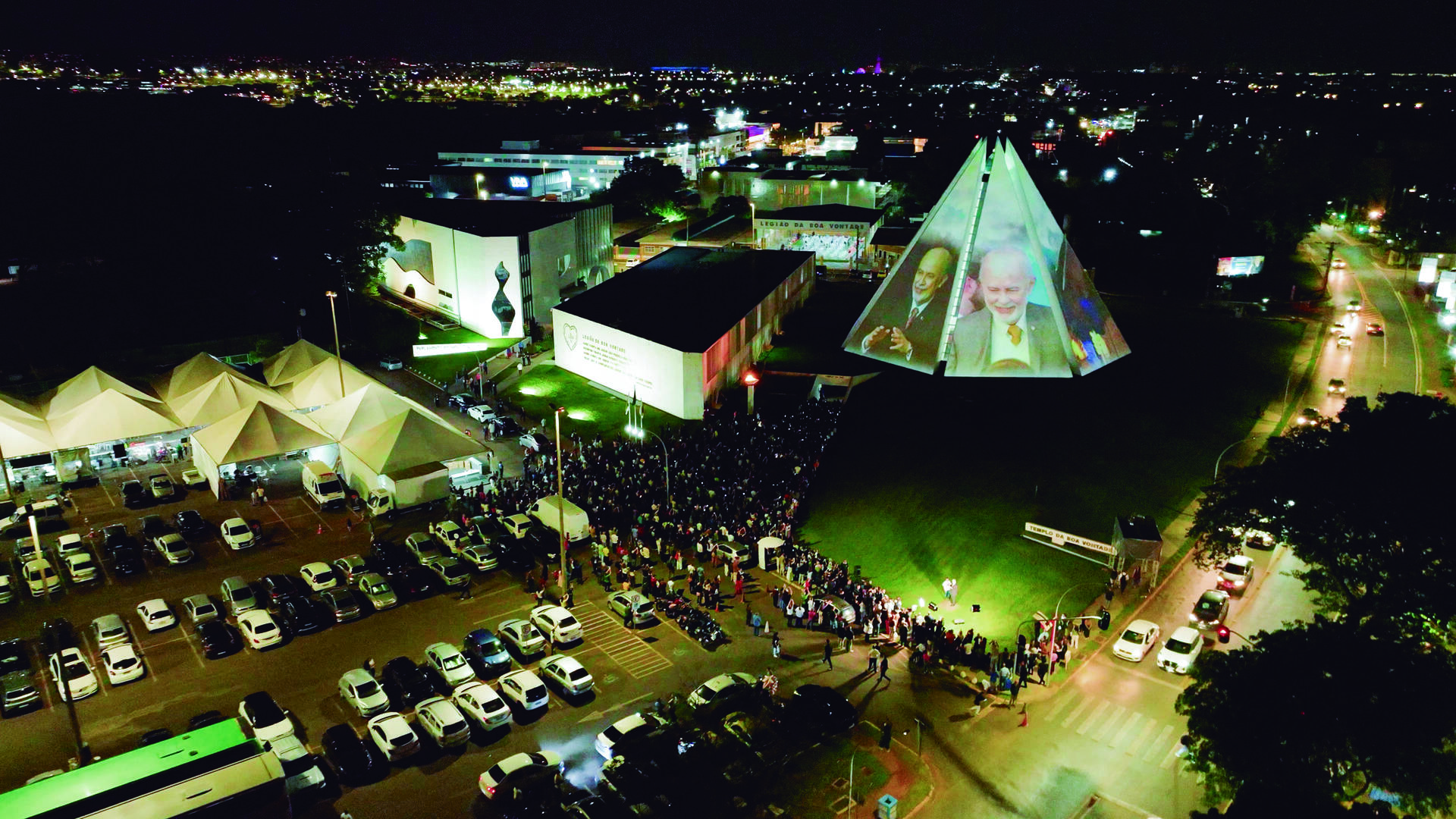 “O Irmão Paiva está conosco, o seu Espírito Eterno desce até nós. Podemos sentir a vibração! Gratidão! Gratidão! Gratidão!”, bradou o Irmão Francisco Periotto ao conduzir o principal momento das comemorações dos 36 anos do Templo da Paz, em Brasília/DF, no dia 25 de outubro de 2025. Em emocionante recordação, todos puderam rever a mensagem fraterna do Fundador do TBV proferida em 20 de outubro de 2012, durante as festividades do 23° aniversário do monumento. Nela, o Irmão Paiva convidou todos a acompanharem a leitura da emblemática passagem bíblica “A pesca chamada milagrosa” (Evangelho de Jesus, segundo Mateus, 4:18 a 22; Marcos, 1:16 a 20; e Lucas, 5:1 a 11).