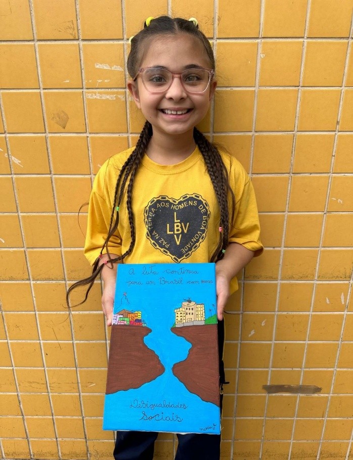 Atendida pelo serviço de convivência Criança: Futuro no Presente!, no Centro Comunitário de Assistência Social José de Paiva Netto, da LBV, em Campinas, SP, o Soldadinho de Deus Maria Antônia de Sousa Cândido, 9 anos, escreveu lindas palavras ao Presidente das Instituições da Boa Vontade, Irmão Francisco Periotto: